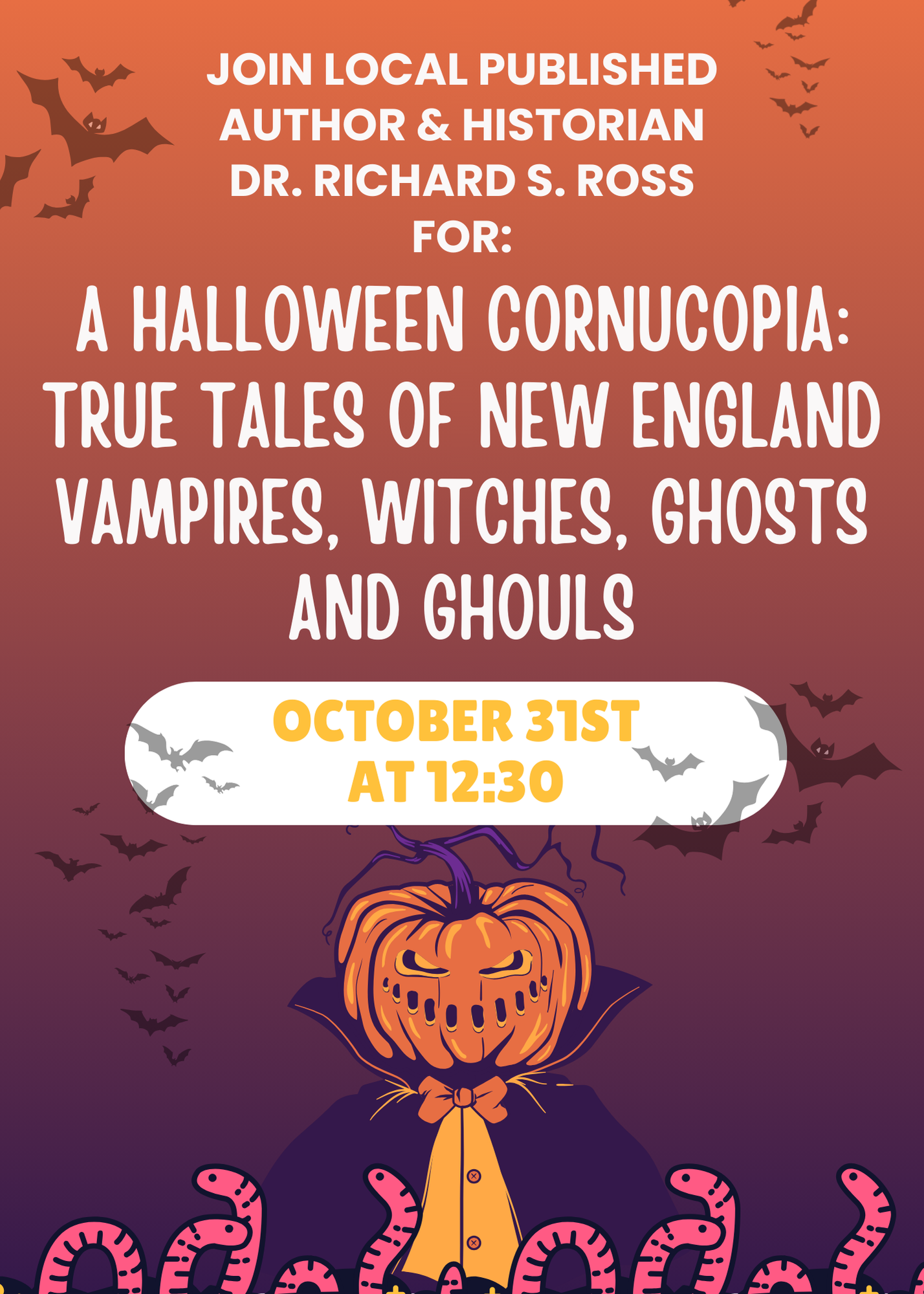 Join local published author and historian Dr. Richard S. Ross as he speakers about New England's hauntings, folklore, and more!
